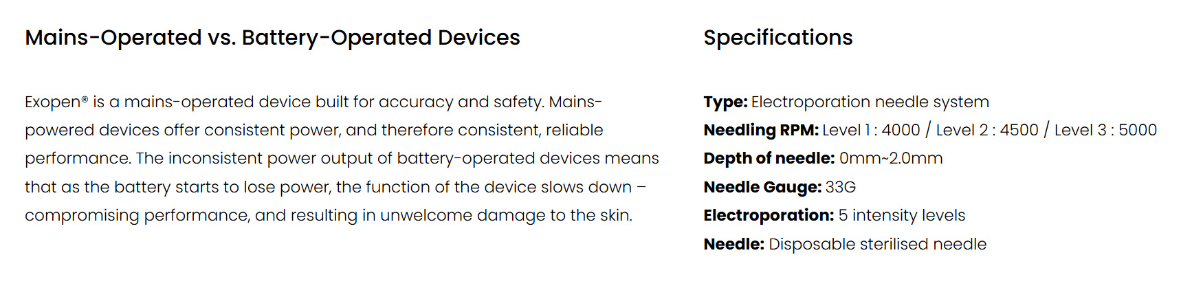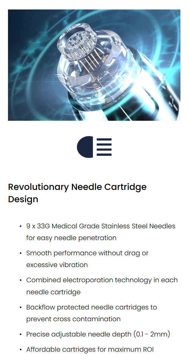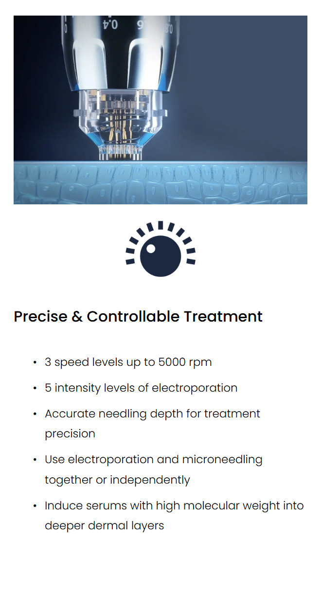 The electroporation acts to increase the permeability of the cell membrane and as such transdermal product delivery for faster, more effective results.